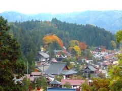 在日本列岛正中央的中部地方,有岐阜县的飞驒高山。市区内有一条贯穿城市东西的国道,沿着大街走,南北两边分别都保留了许多古老的街道。街道上老房子一间间地相连着,窗户都由幼细木材组成格子形状,非常独特。在这里散步,简直有种回到江户或明治时代的感觉。两个区域附近分别都有步行径,直通赏红叶的最佳景点。