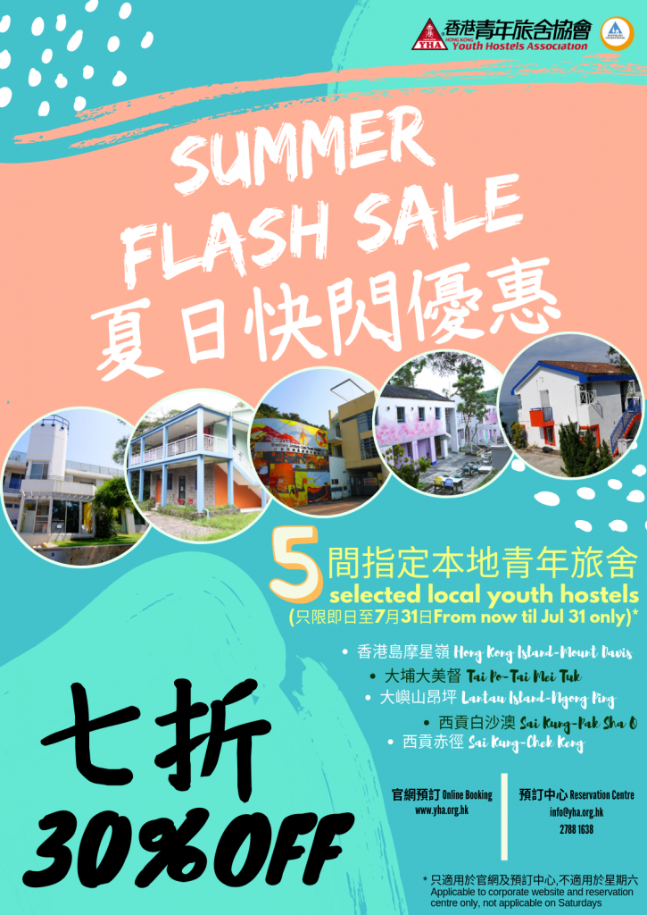 即日起於官網或預訂中心預訂五間指定本地青年旅舍,即可享七折優惠。